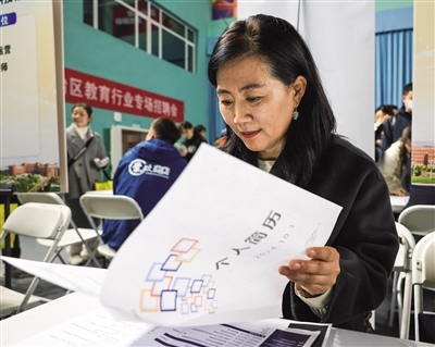 招聘单位工作人员翻看学生简历。
