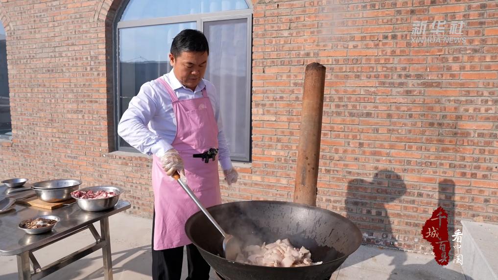 小雪至,天渐寒。每到这个时节,内蒙古包头冬季最隆重的一道宴席——杀猪菜就会如期登场。 区别于东北的杀猪菜把白肉煮好切片炖煮,包头的杀猪菜,肉必须切大块厚片,通过煸炒去掉生猪肉的腥味,雪白的肉片煸炒至金黄才能加入瘦肉,再次煸炒二十多分钟,至水分蒸发后,添水炖煮入味,放入土豆、酸菜等本地自产自制的配菜。勤翻慢炖一个小时后,一大锅色香味俱全的杀猪菜就做好了。一道杀猪菜,串起的不仅是辛劳一年收获的喜悦、邻里的温情,更是对生活的感恩。