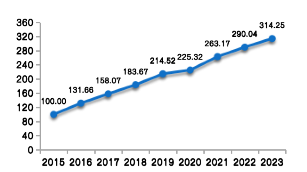 指数结果显示,2023年,内蒙古新能源高质量发展指数达314.25点,延续高速增长态势,同比增长8.35%,基期以来年均复合增长15.39%,内蒙古新能源产业发展水平高速跃升,示范引领我国能源低碳转型。