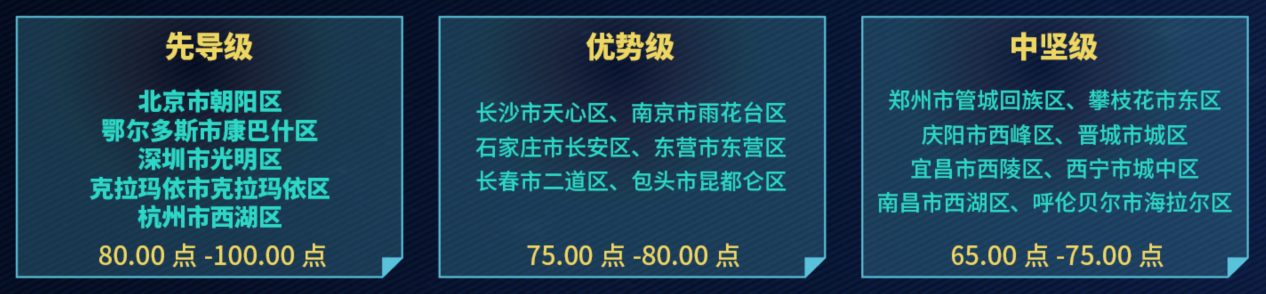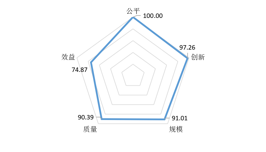 从具体维度来看,康巴什区在教育公平、创新、规模、质量和效益五大方面均表现良好,相对均衡,特别是在公平和创新两方面具有突出表现,分指数值分别达到100.00点和97.26点,在总样本中属于第一梯队。