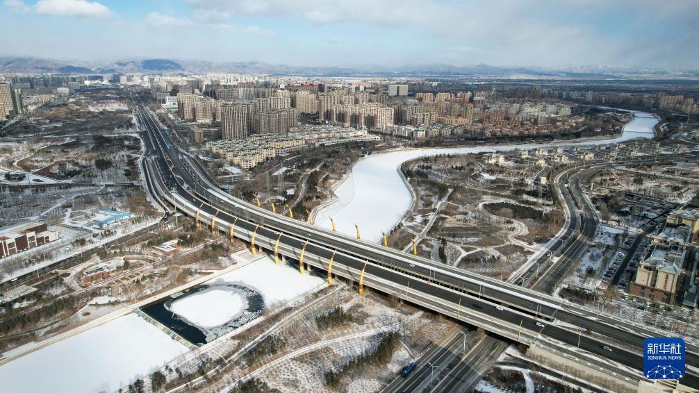 这是12月16日拍摄的呼和浩特市敕勒川大桥(无人机照片)。
