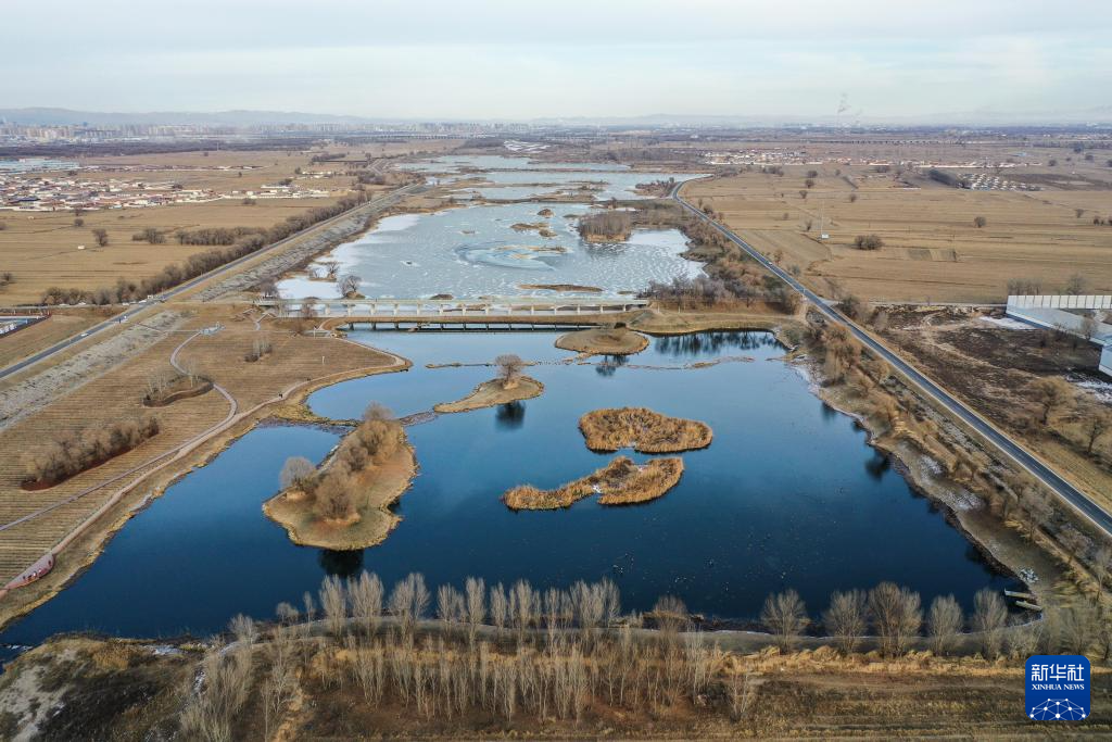 这是12月18日拍摄的呼和浩特市大黑河郊野公园“千岛湖”风景区(无人机照片)。新华社记者 李志鹏 摄