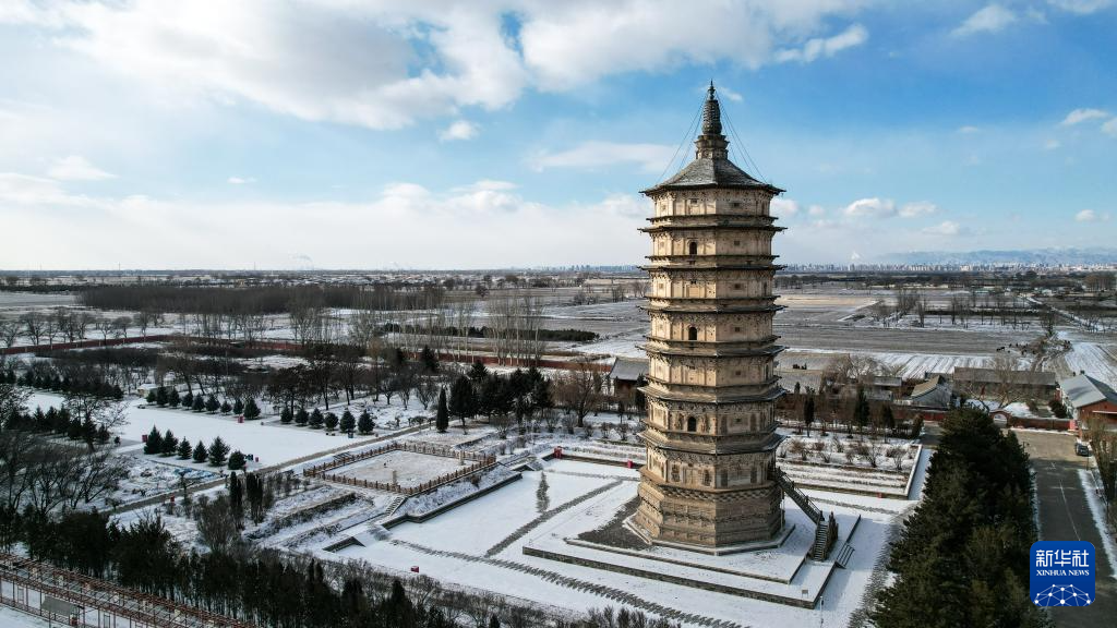 这是12月20日拍摄的位于呼和浩特市赛罕区的万部华严经塔(无人机照片)。万部华严经塔建于辽代,俗称“白塔”,1982年被国务院确定为第二批全国重点文物保护单位。新华社记者 李志鹏 摄