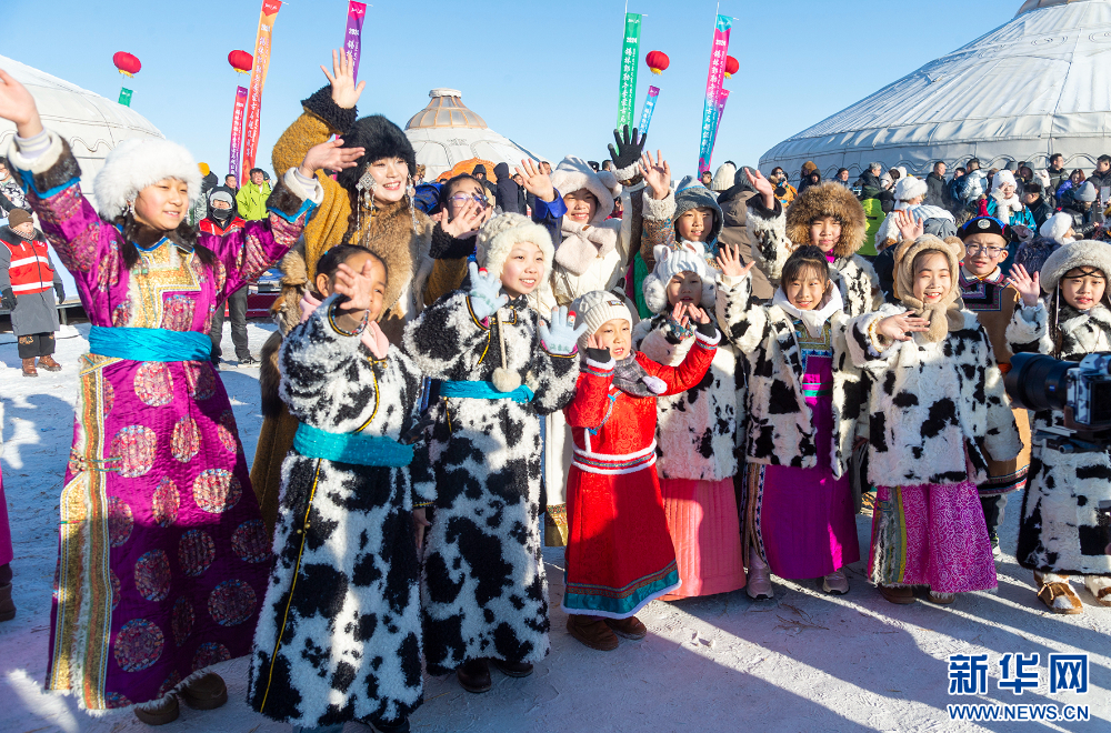 2024锡林郭勒冬季蒙古马超级联赛总决赛开幕式现场举办的文娱活动。新华网发(孙沐野 摄)
