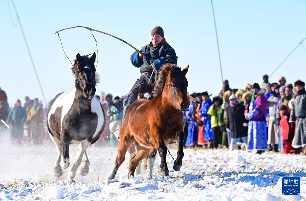 12月28日,牧民在开幕式上进行套马表演。新华社发(王正摄)