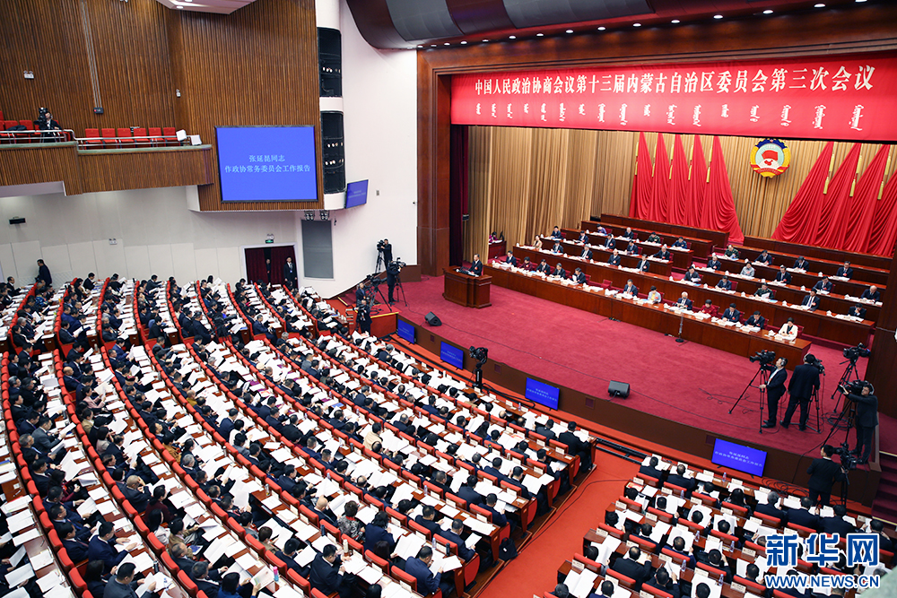 1月13日上午,中国人民政治协商会议第十三届内蒙古自治区委员会第三次会议开幕现场。新华网 石毅 摄