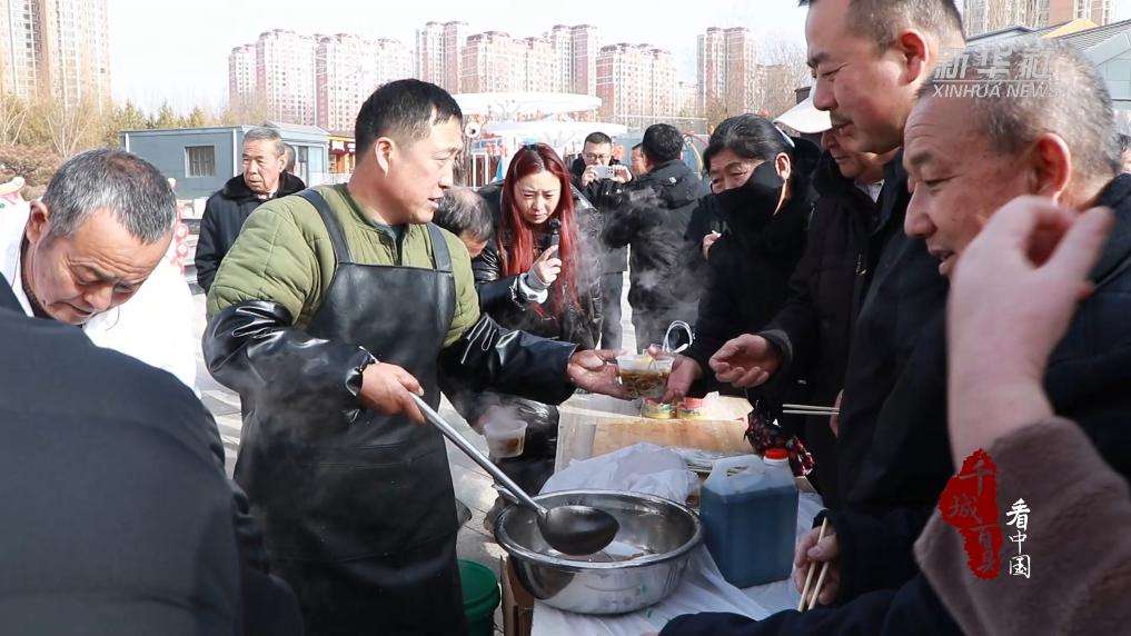 近日,内蒙古自治区鄂尔多斯市伊金霍洛旗举办年俗体验展。活动现场,黄酒制作、推磨豆腐、卤肉烧制、手工粉条等特色美食集中展出,还有一碗碗热气腾腾、香气四溢的荞面饸饹,让游客大快朵颐。整个体验展年味满满、烟火气十足。