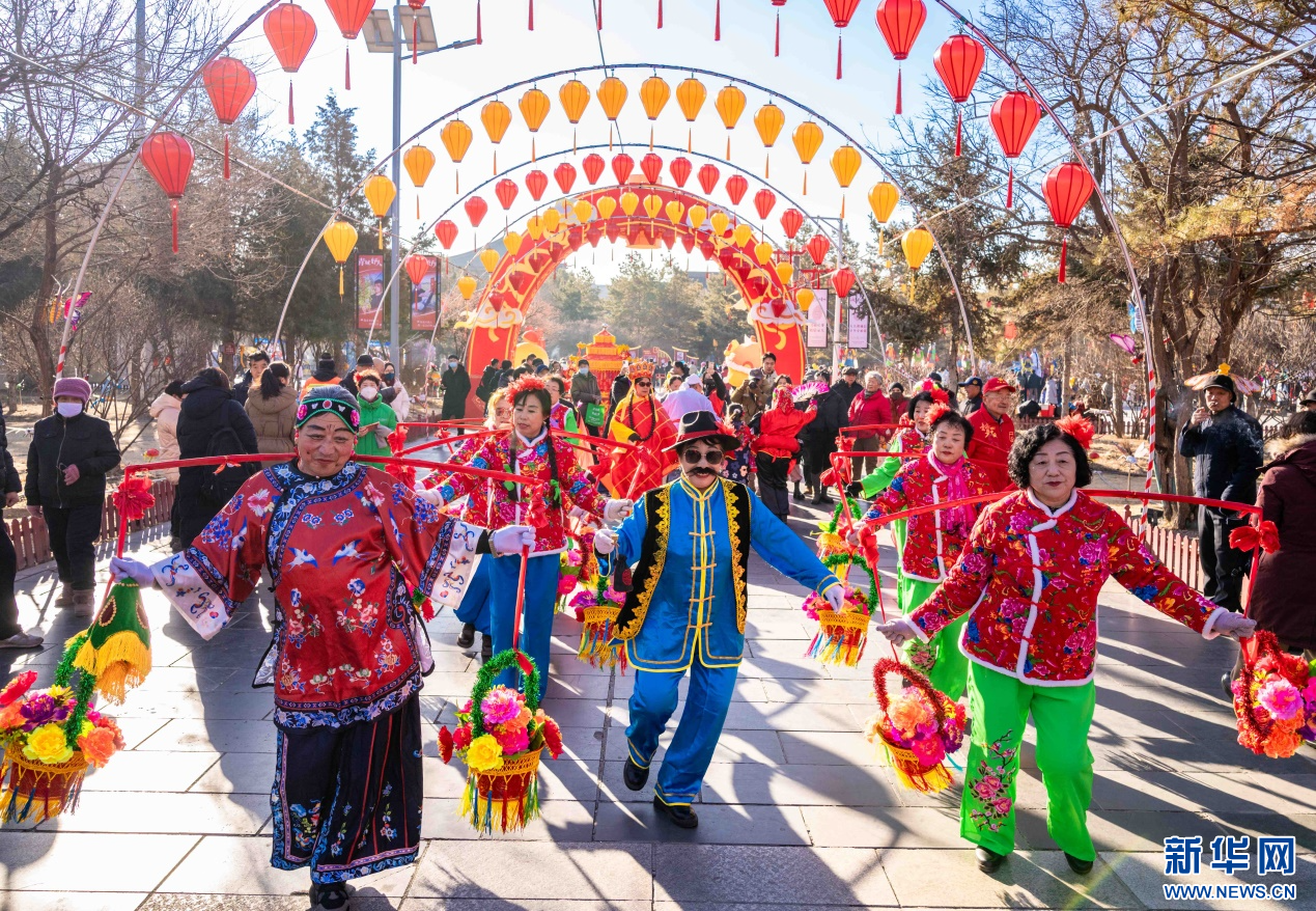 1月22日,民间艺人在呼和浩特市春节主题活动现场扭秧歌。新华网发(丁根厚 摄)