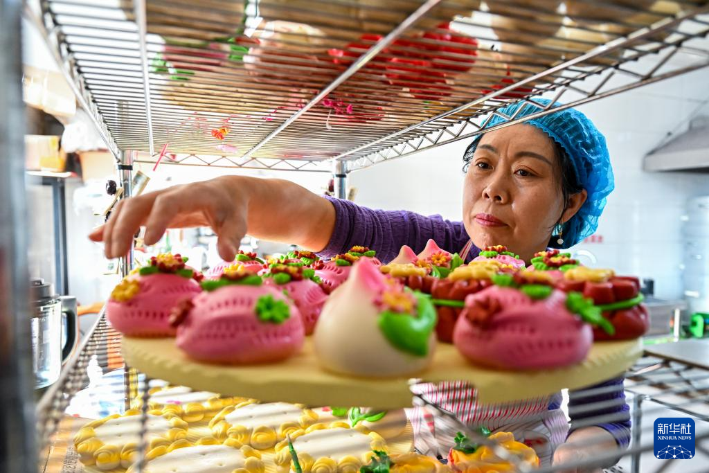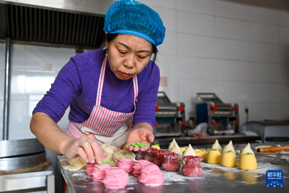 春节临近,内蒙古呼和浩特市的花馍店铺赶制花馍供应市场,为农历新年增添喜庆气氛。