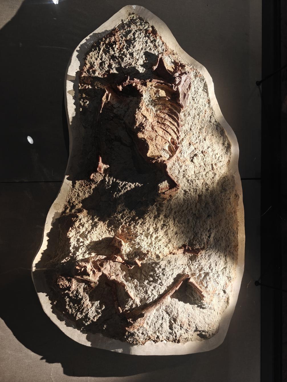 据了解,该恐龙化石是2021年内蒙古自然博物馆科研人员在阿拉善左旗的毛儿图—大水沟野外考察点发现的,化石标本包含两个埋藏在一起的个体。经中国科学院古脊椎动物与古人类研究所、内蒙古自然博物馆科研人员通力合作、潜心研究,发现两具恐龙骨架化石为窃蛋龙类恐龙新类群,命名为“百年鸳鸯龙”。研究成果在《白垩纪研究》杂志线上发表。