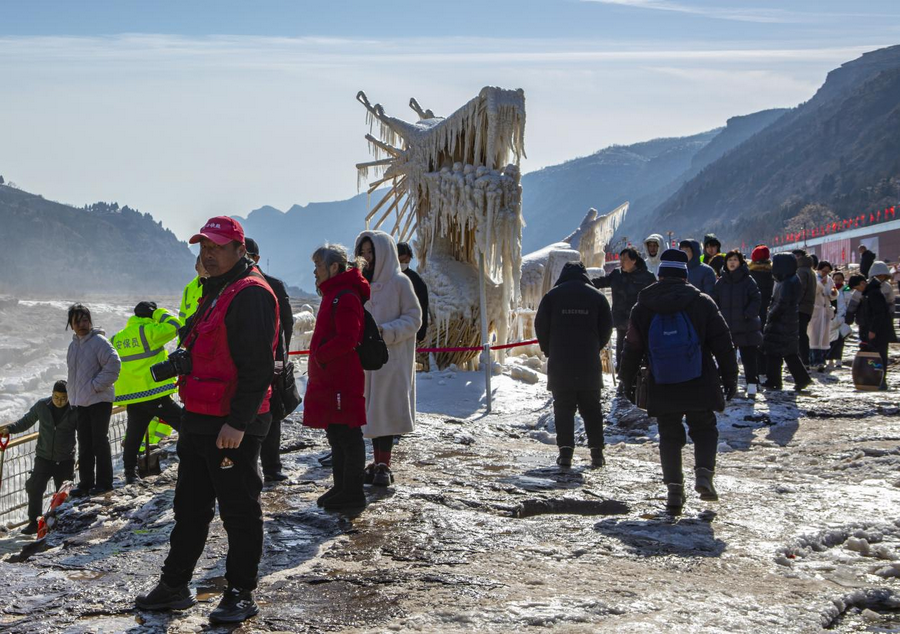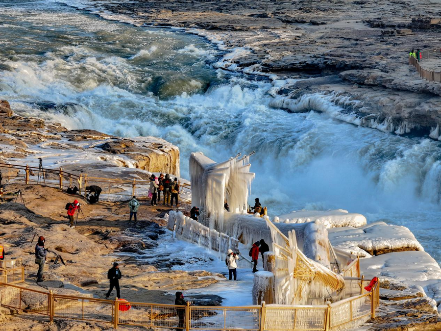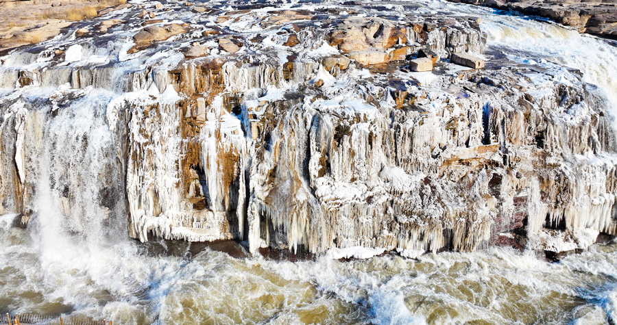 壶口瀑布现冰瀑玉壶奇观。