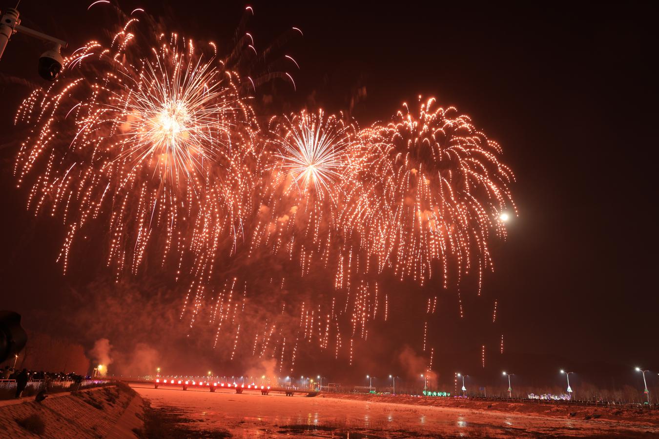晚上,喀喇沁旗政府广场人头攒动,烟花焰火晚会如期举行,一道道亮光竞相划过天际,绚烂璀璨的烟花如同春天的花朵在这座城市的上空中绽放,华光熠熠,满眼繁华。