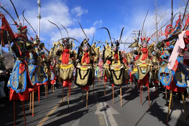 2月12日,内蒙古赤峰市喀喇沁旗隆重举办“元宵节秧歌高跷大拜年”活动及烟花焰火晚会活动。