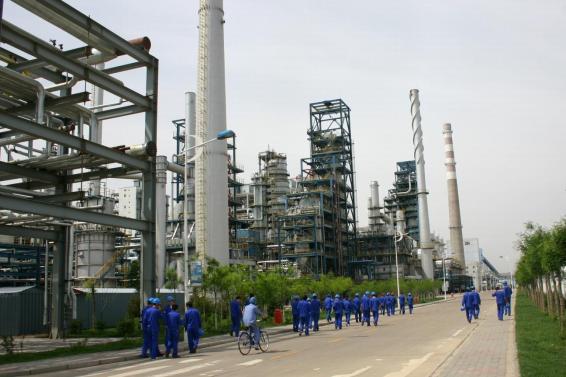 2004年8月25日,神华集团“煤制油”直接液化装置在伊金霍洛旗开工建设。神华煤直接液化项目总建设规模为年产油品500万吨,计划分二期建设。新华社记者 任军川 摄