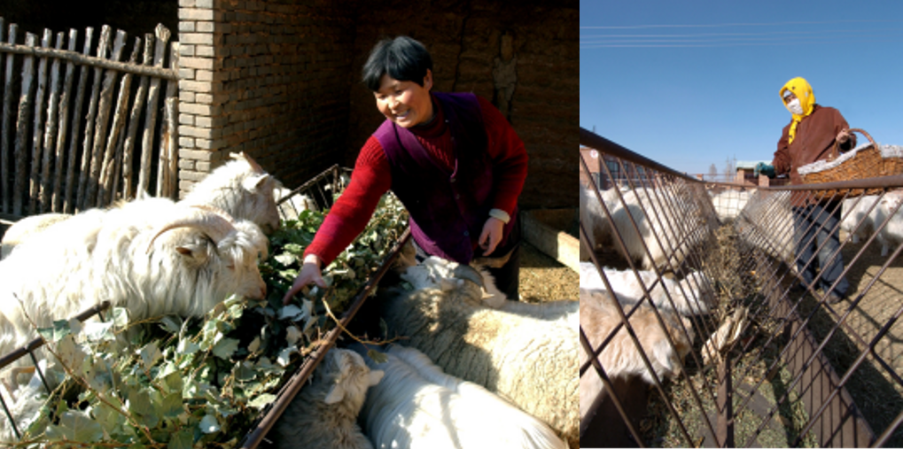 右图:2007年4月15日,伊金霍洛旗苏布尔嘎镇一位农民正在为小羊羔添草料。新华社记者 任军川 摄