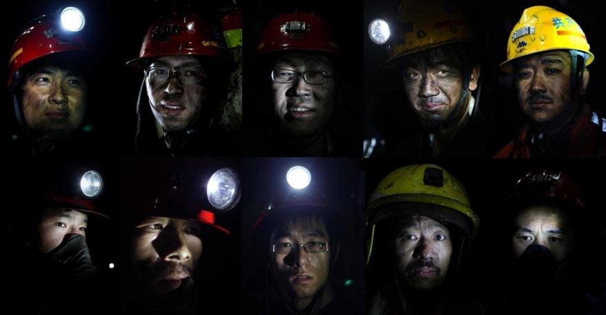 右上:2021年12月16日,在伊金霍洛旗神华集团上湾煤矿,工人在100多米深的矿井下抢修采煤设备。
