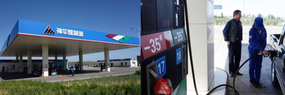 右图:2013年8月30日,工作人员在神华煤制油加油站给顾客加油。该煤制油加油站位于神华集团煤制油基地项目所在地——伊金霍洛旗马家塔,是神华集团第一个自建自有的加油站,也是国内首个煤制成品油加油站。新华社记者 任军川 摄