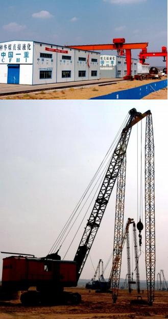 下图:2004年9月13日,位于伊金霍洛旗境内的神华煤直接液化项目一期工程正在施工。