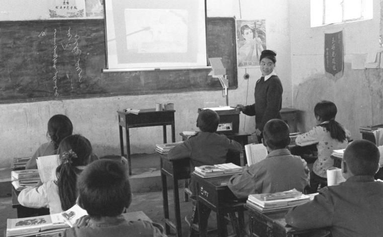 右图:1986年4月1日,阿拉腾席热镇柳编厂的女工在编柳条筐。新华社记者 袁苓 摄