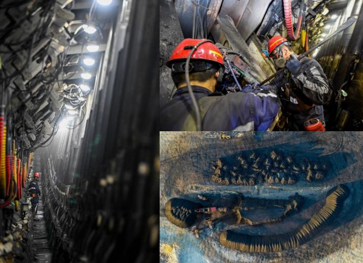 右下:2021年2月12日,神东煤炭集团布尔台煤矿综采二队检修班的工人们坚守在工作岗位上。新华社发