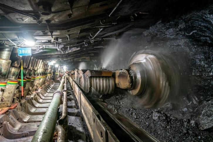 左下:2021年2月11日,神东煤炭集团大柳塔煤矿综采一队员工在检修采煤机。