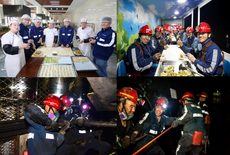 右上:2021年2月11日,神东煤炭集团就地过年矿工吃上了公司精心准备的年夜饭。