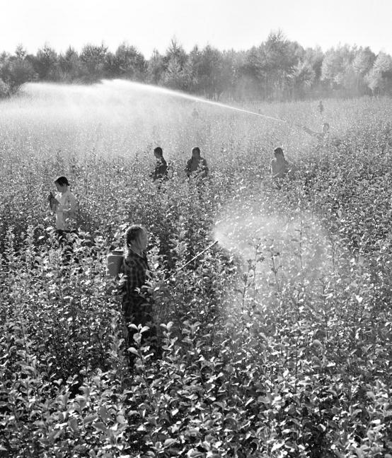 伊金霍洛林场认真做好更新造林工作。图为苗圃工人管理树苗(1976年4月6日摄)。新华社记者 施长江 摄