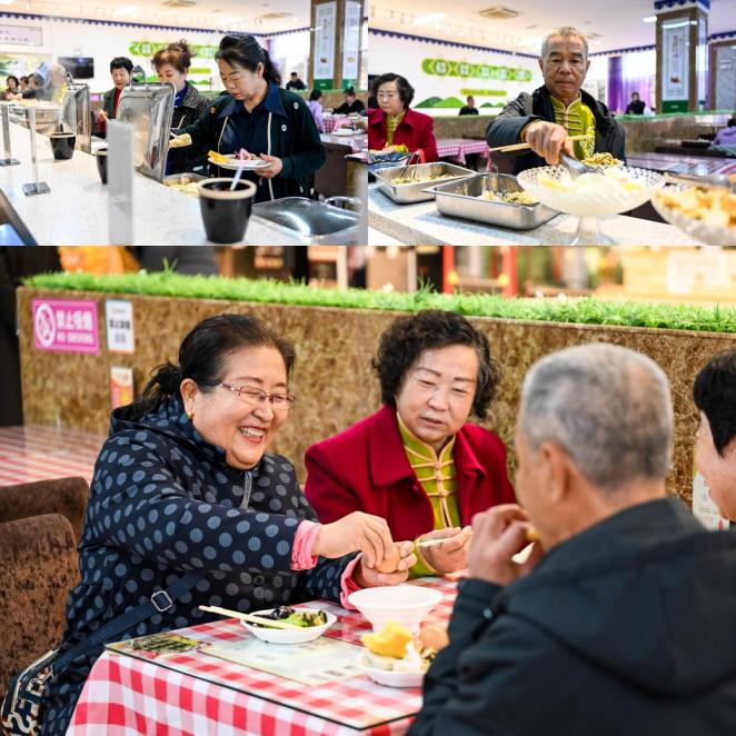 2023年4月28日,老年人在伊金霍洛旗助餐点之一的福馨自助餐厅用餐。伊金霍洛旗积极打造老年人助餐点,拓展助餐服务覆盖范围,让老年人享受贴心的用餐服务。新华社记者 李志鹏 摄