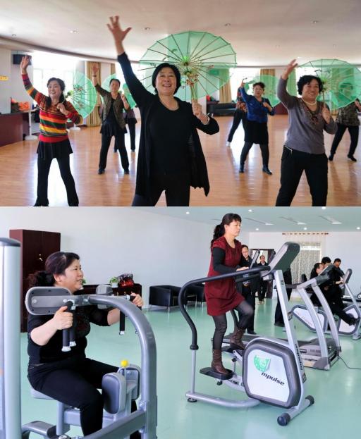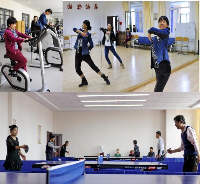 下图:2013年3月12日,居民们在通格朗社区的健身房内使用健身器械。