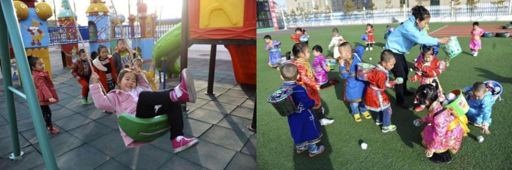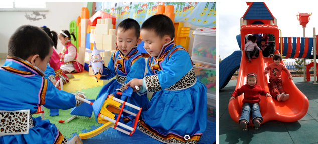 2010年5月7日,伊金霍洛旗札萨克镇幼儿园孩子在课间玩耍。新华社记者 张领 摄