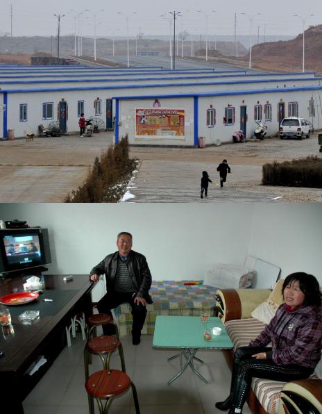 下图:2012年3月4日,伊金霍洛旗阿勒腾席勒镇汽车城便民租用房小区一对夫妻在过渡房里。为了有序地推进旧城拆迁,同时也为给大量外来务工人员提供便利的住宿条件,伊金霍洛旗政府自2011年开始投入大量资金建设过渡性安置房。新华社记者 李利军 摄