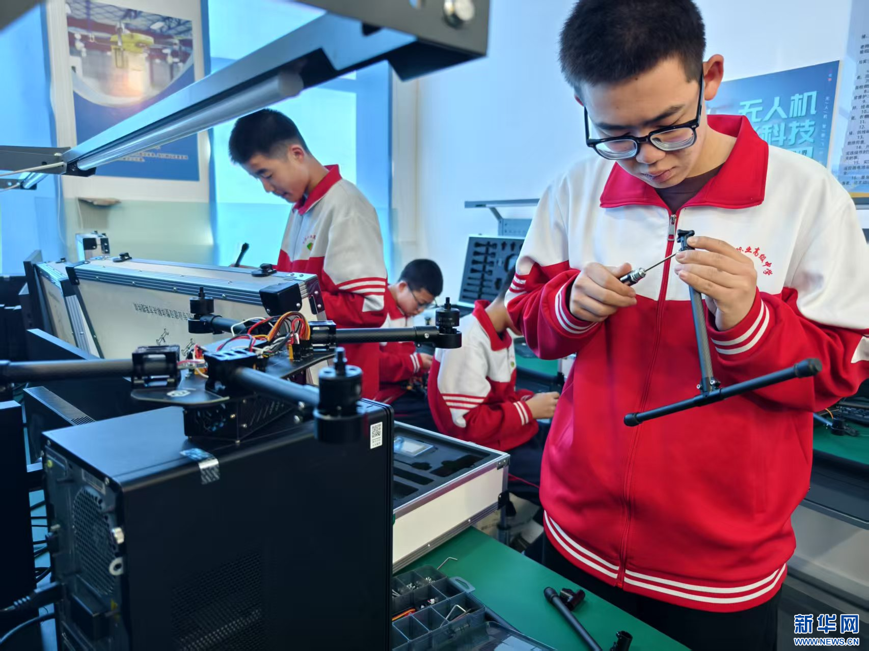 3月15日,准格尔旗职业高级中学学生学习无人机修复技术。新华网 杨腾格尔 摄