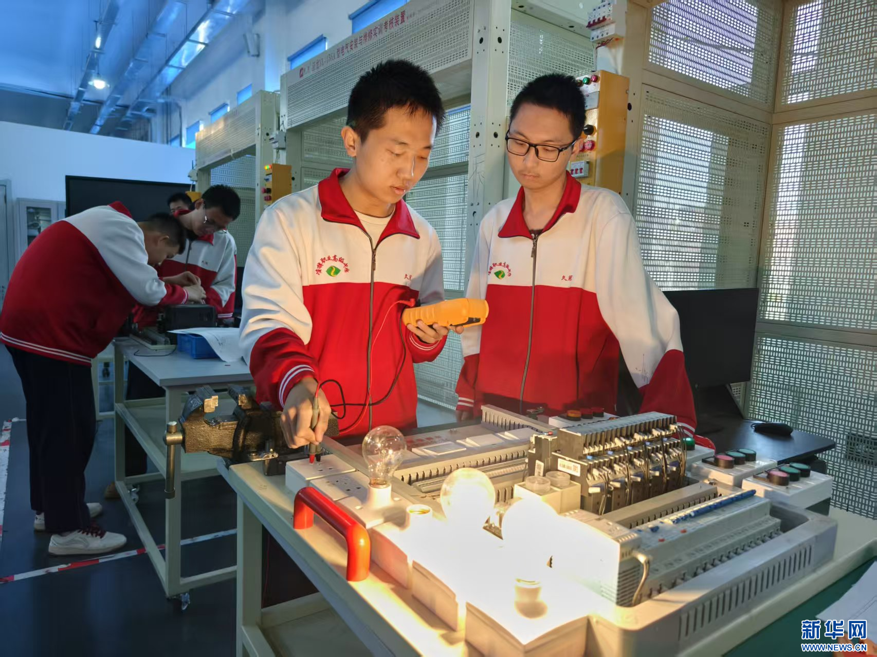 3月15日,准格尔旗职业高级中学学生在学习电路知识。新华网 杨腾格尔 摄