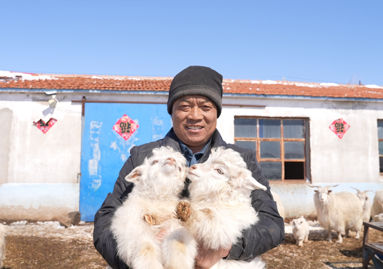 王景峰介绍,自家饲养着500多只绒山羊,每年春季和秋季各有一次接羔。目前,已有100多只小羊羔顺利诞生,预计到五一前后,还会有100多只羊羔降临,双羔率达到了20%。为了让这些小羊羔茁壮成长,王景峰每天天不亮就起床,直到夜幕降临才休息,精心照料着小羊羔、羊妈妈以及待产的母羊。“虽说辛苦,投入也不小,去年冬天仅羊草和羊料就花费了20万元,但看到这些活泼可爱的‘美羊羊’,心里就满是欢喜。” 王景峰笑着说道,眼神中洋溢着对未来的期待。