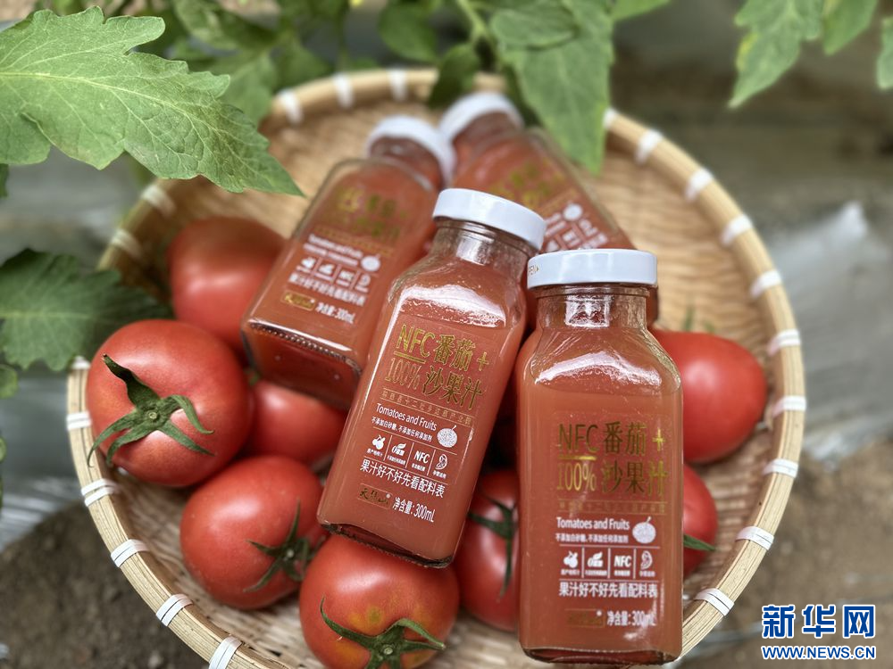 林西县达康产业园区种植的西红柿做成的果汁饮品。新华网发(林西县委宣传部供图)