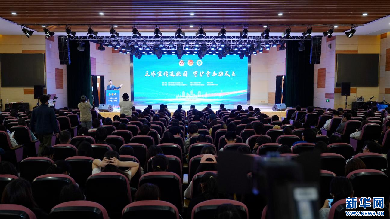 “反诈宣传进校园 守护青春助成长”首场宣讲活动现场。新华网发