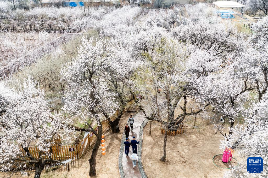 春日里,内蒙古呼和浩特市回民区东乌素图村的杏花次第开放,当地借此举办杏花节,吸引游人前来踏青游玩。