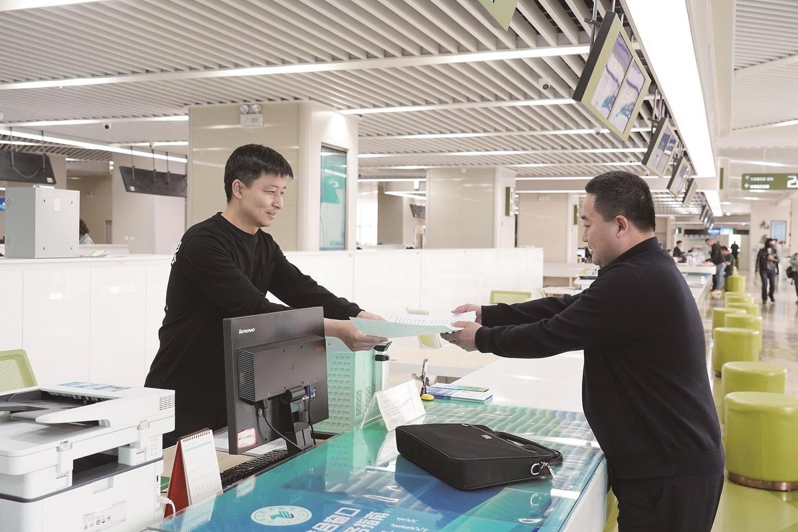政务服务大厅工作人员为企业办理业务