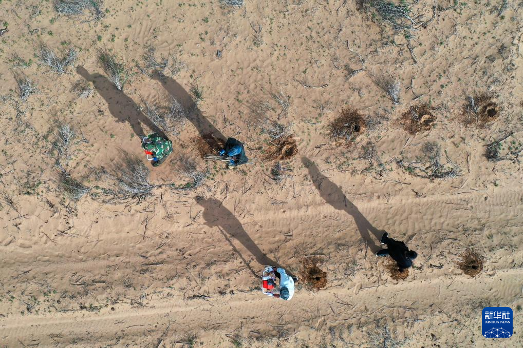 连日来,在内蒙古鄂尔多斯市杭锦旗境内的库布其沙漠里,治沙工人忙着栽种沙柳、柠条等沙生植物,开展库布其沙漠生态治理。今年以来,杭锦旗多举措打好“三北”工程攻坚战,实施建设库布其沙漠锁边林草带、风沙路径阻隔带等5个治沙项目,计划年内完成治沙任务100万亩以上。