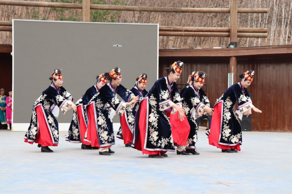 在中国达斡尔民族园非遗展示园的舞台上,欢快的舞蹈跳起来。(李金梅 摄)