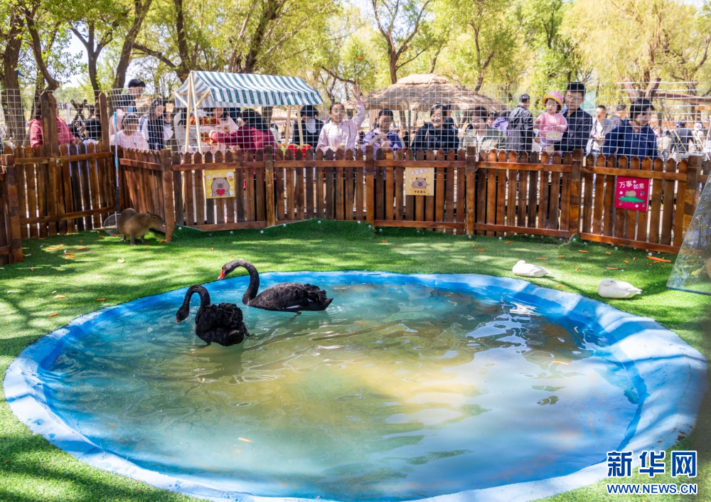 “五一”假期期间,内蒙古自治区呼和浩特玉泉区大黑河郊野公园萌宠乐园迎来亲子游热潮,孩子们与羊驼、天鹅等萌宠亲密互动,寓教于乐享假期。
