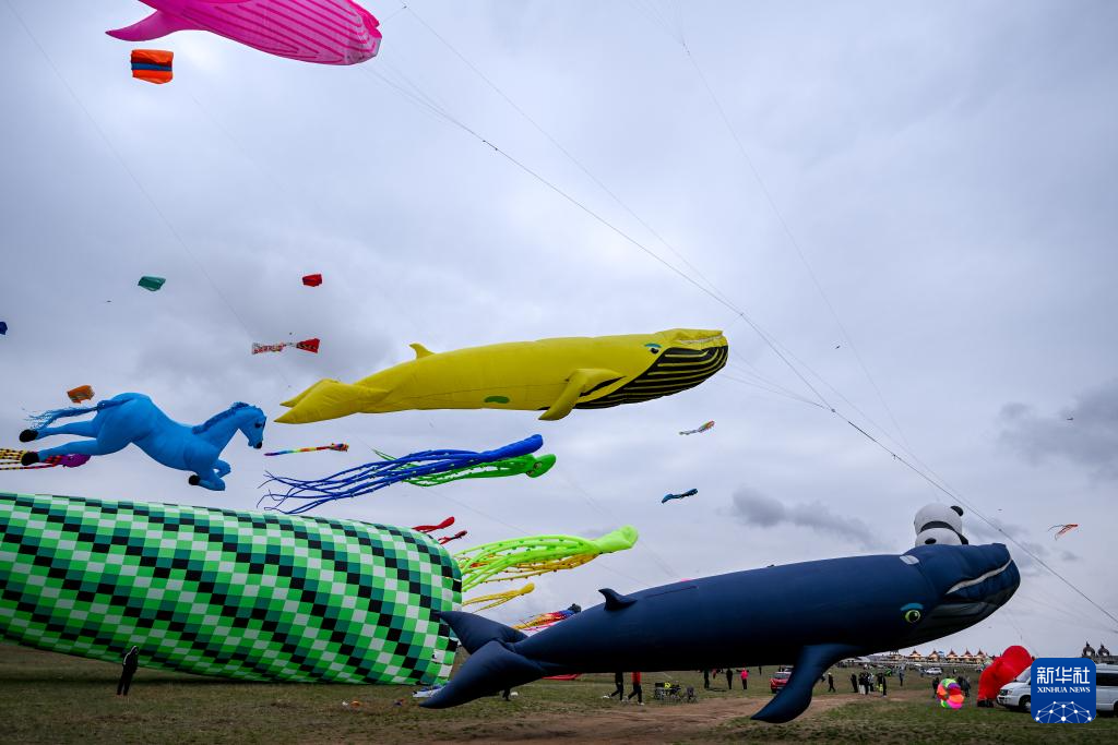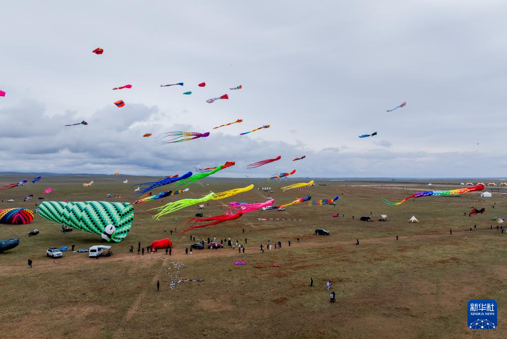 5月2日,各式风筝在格根塔拉草原上空飞舞(无人机照片)。
