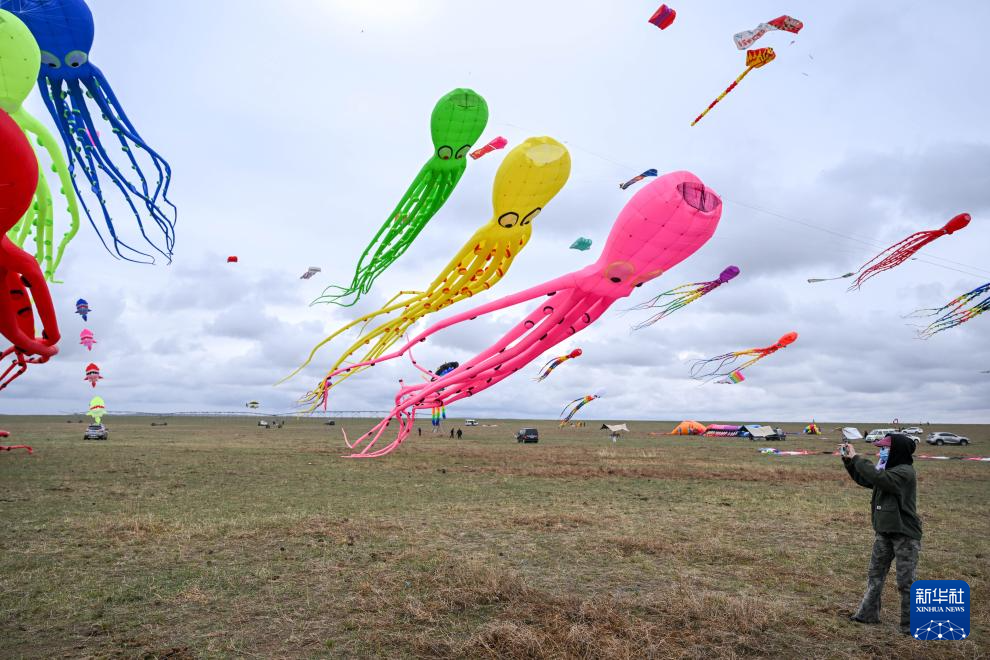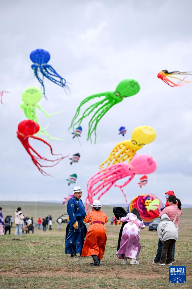 5月2日,乌兰察布市四子王旗首届草原风筝节在格根塔拉草原旅游中心开幕,吸引众多游客前来游玩。