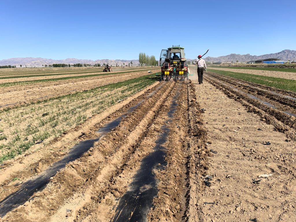 眼下,在巴彦淖尔市临河区狼山农场八分场的小麦套种玉米基地,浅绿色的麦苗郁郁葱葱、迎风摇曳,每隔22行小麦中间都预留了空地,农机手驾驶播种机在其中匀速前进,施肥、播种、铺设滴灌管和地膜等作业一气呵成。种粮大户邬子林说:“今年我把1600亩地全部按照小麦套种玉米模式种植,预计每亩产600斤小麦、1400斤到1600斤玉米,综合收益比单种小麦或者玉米增加5%以上,实现一地两种、一亩多收。”