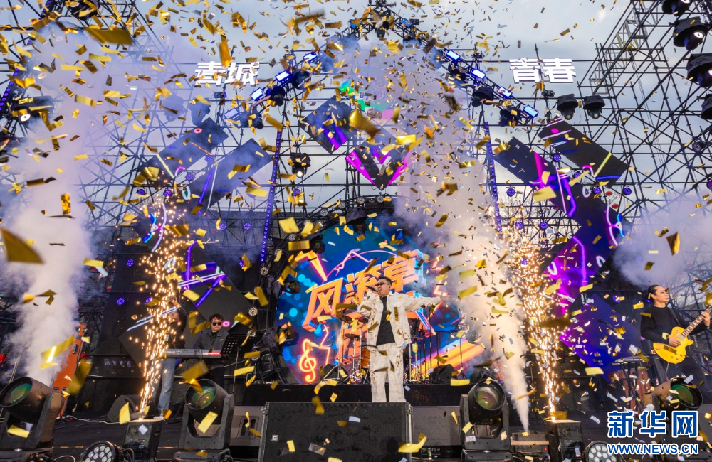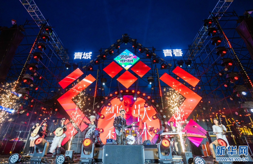 5月1日,音乐人在第六届塞上老街音乐美食季“青城·青春”音乐派对现场献唱。新华网发(丁根厚 摄)