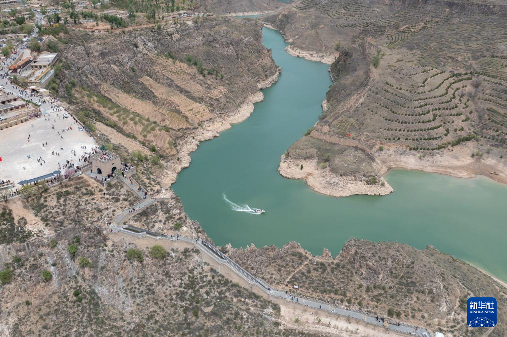 5月2日,游客在内蒙古自治区呼和浩特市清水河县老牛湾村游览(无人机照片)。