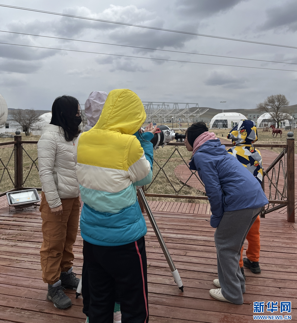 5月3日在正镶白旗星空文化旅游营地景区,游客学习使用天文望远镜。新华网发(郭艳娟 摄)