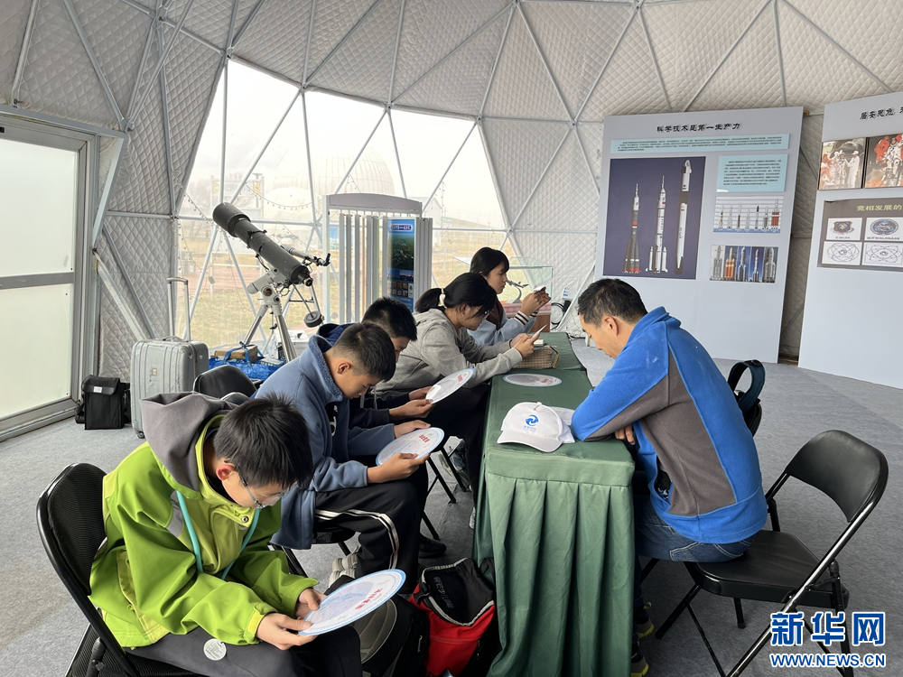 5月3日在正镶白旗星空文化旅游营地景区,研学学生学习使用星图。新华网发(郭艳娟 摄)