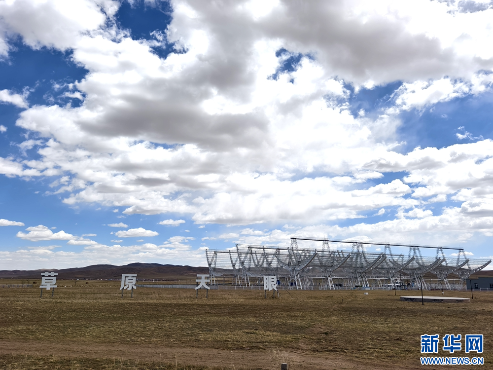 4月25日在锡林郭勒盟正镶白旗中国科学院国家空间中心明安图观测站拍摄的子午工程二期大型监测设备之行星际闪烁监测望远镜。新华网 杨腾格尔 摄