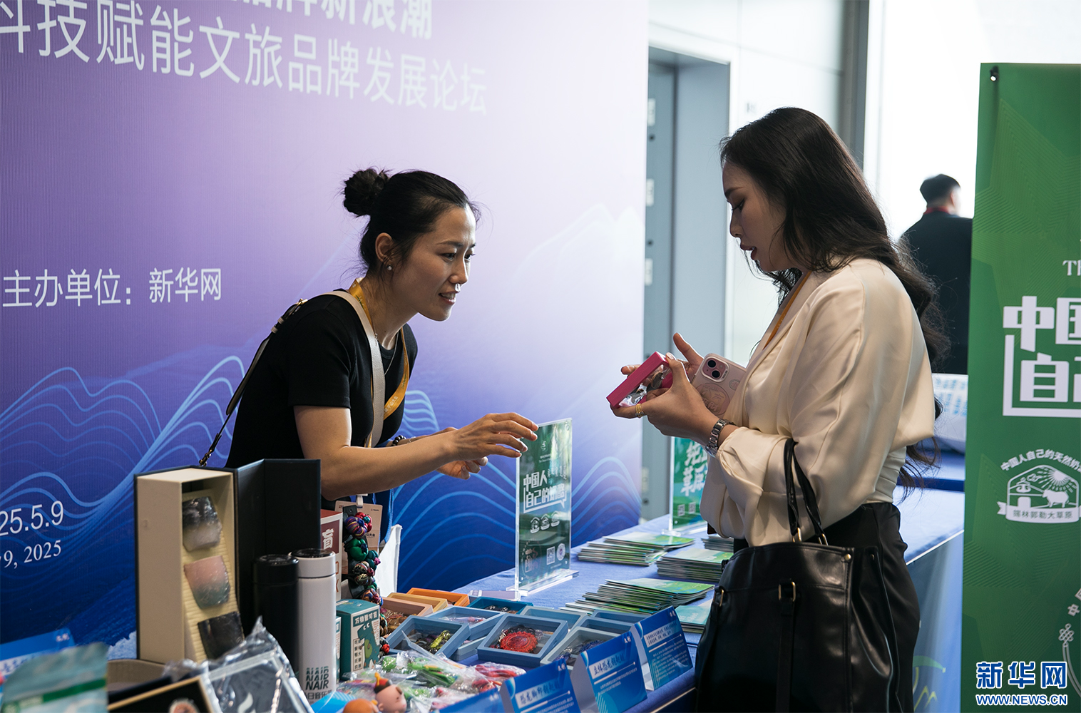 5月9日,乌兰察布市文化旅游体育局工作人员在2025世界品牌莫干山大会科技赋能文旅品牌发展论坛作文旅推介。新华网发(侯乐 摄)
